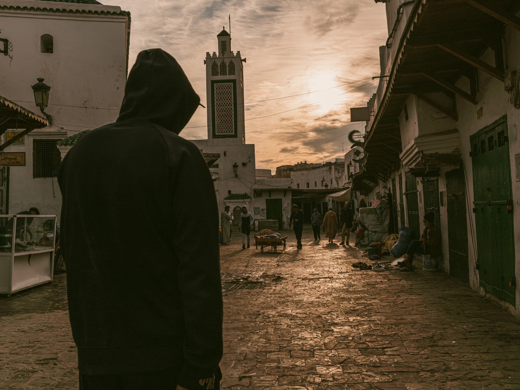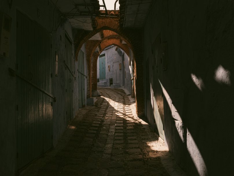 Las medinas son lugares que se recorren caminando, sin rumbo fijo, dejándose llevar. En ese movimiento aparecen las escenas: niños que cruzan un callejón, vecinos que conversan, figuras que entran y salen de la luz.